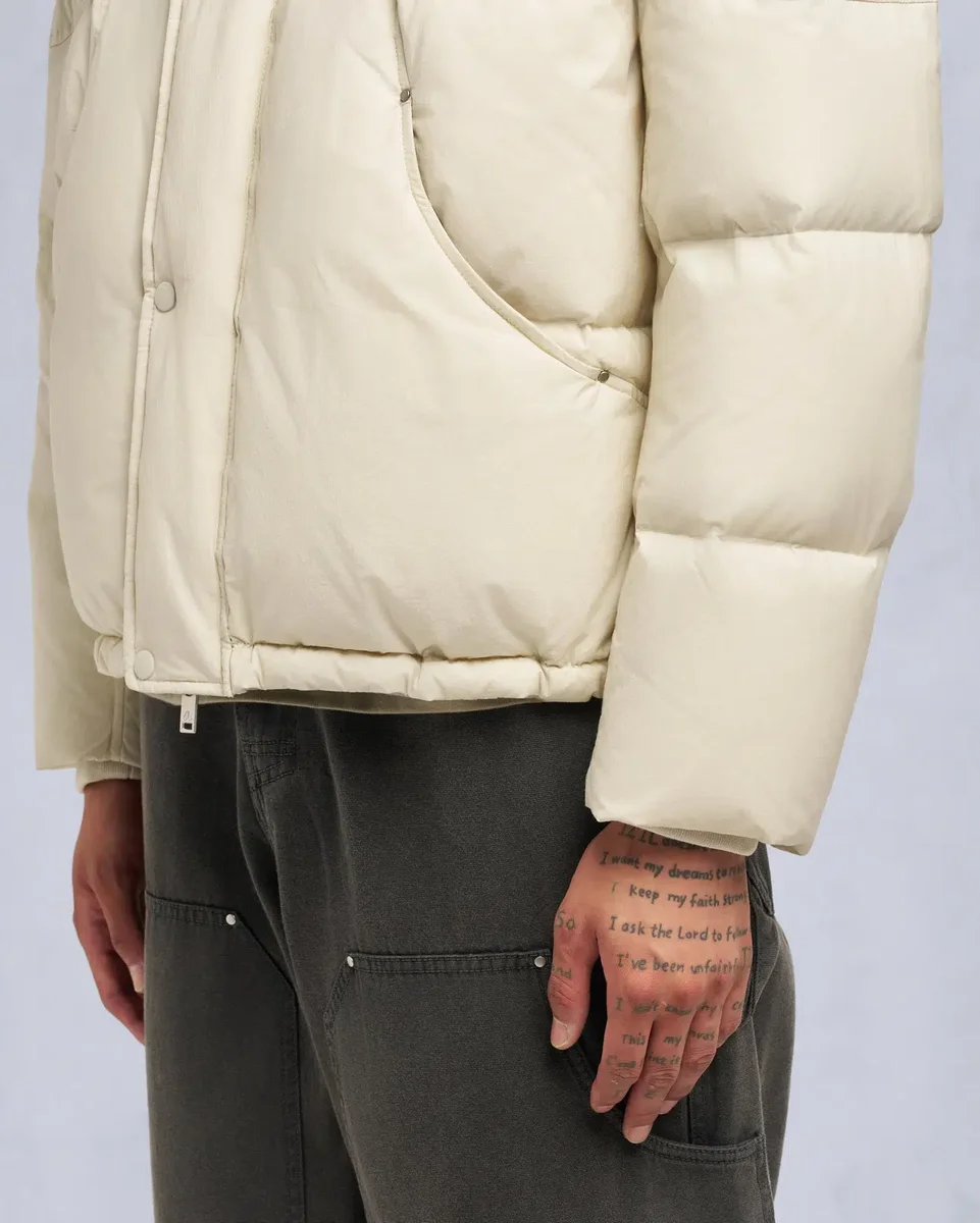 A classic puffer reinvented with modern engineering and craftsmanship. With powerful 90/10 duck down, a sherpa-lined collar, and durable shell outer, the Everes