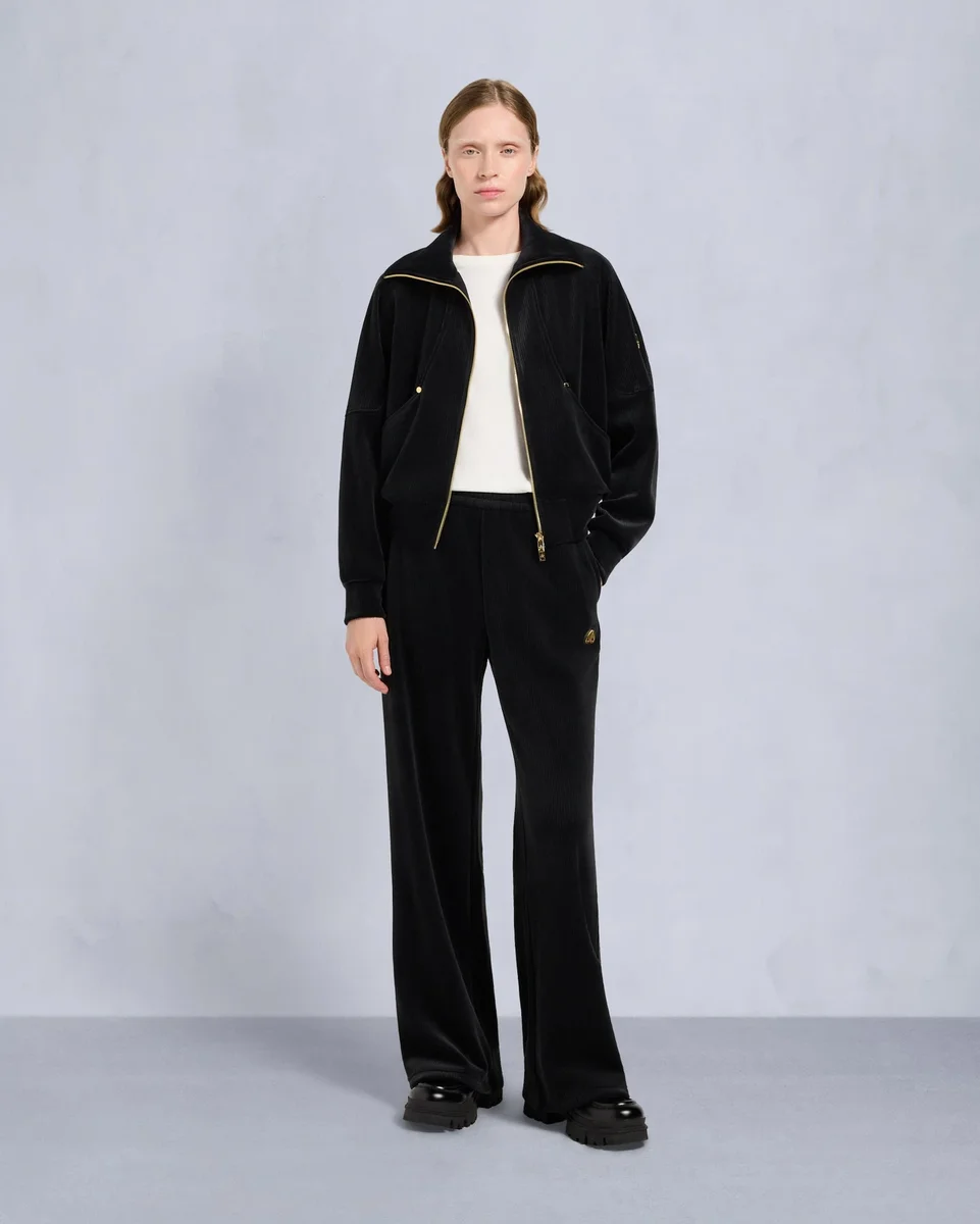Luxuriate in style with the ultimate wide-legged sweatpant, fashioned in super-soft corduroy velour. Pair with the matching zip-up for the full cozy effect.