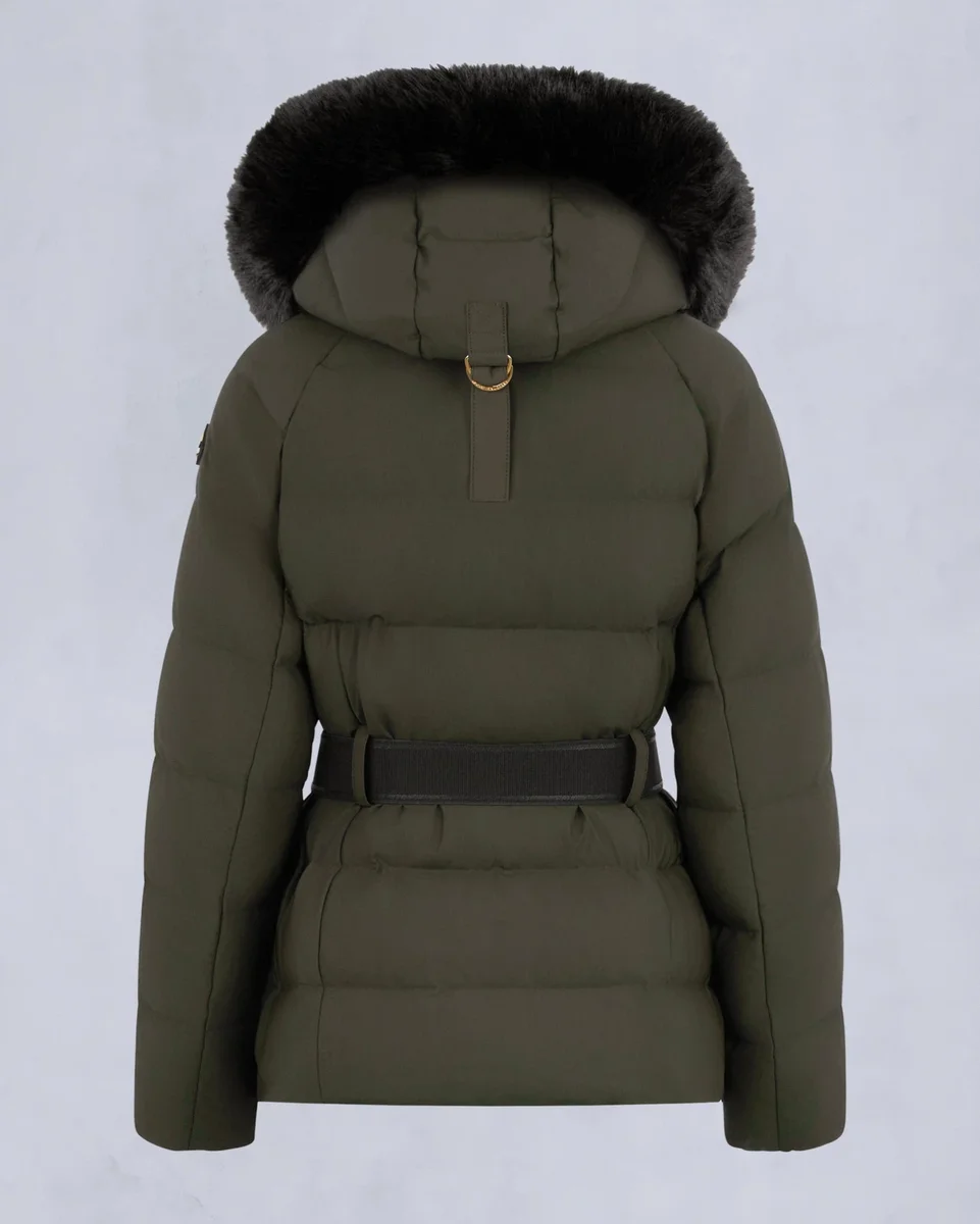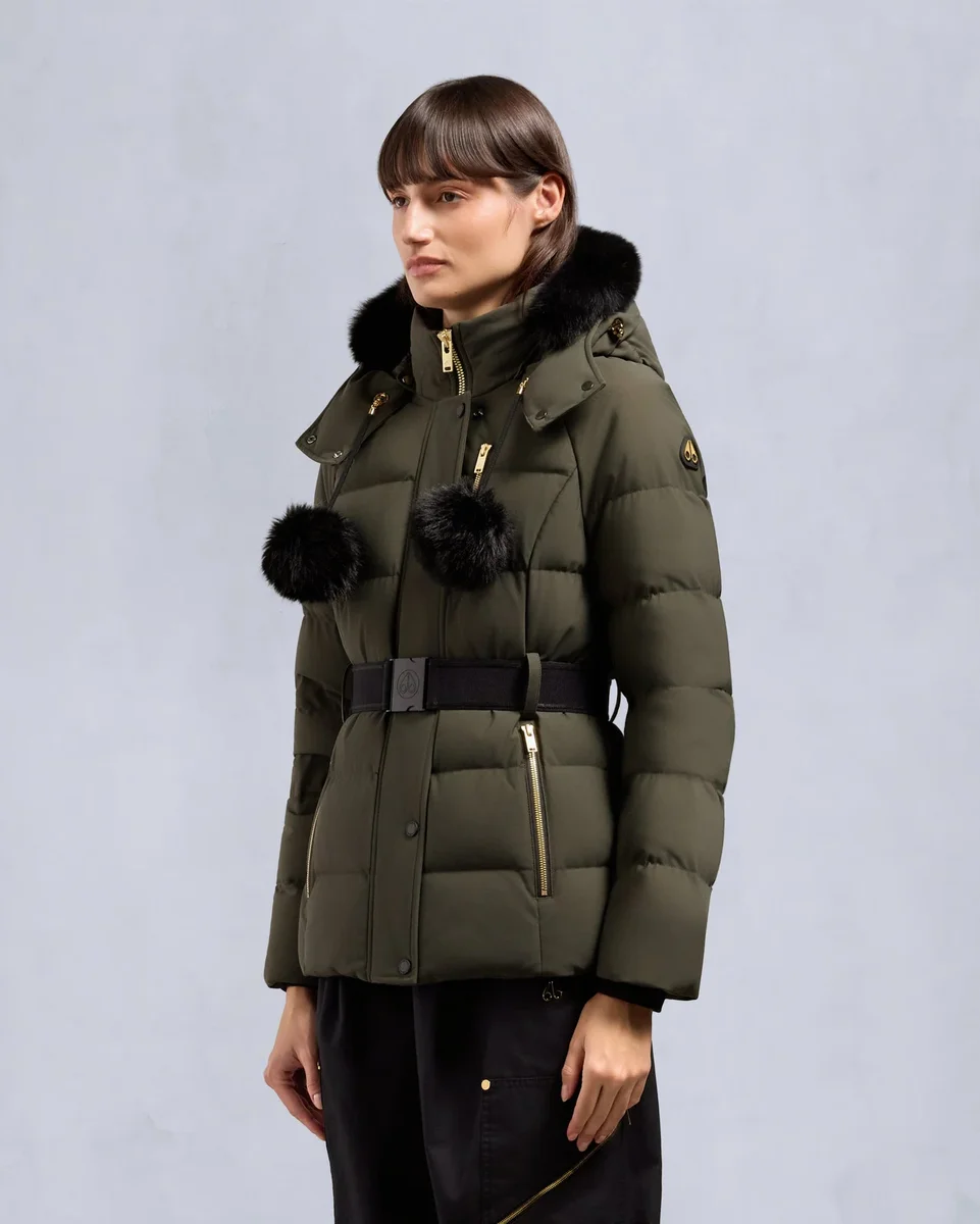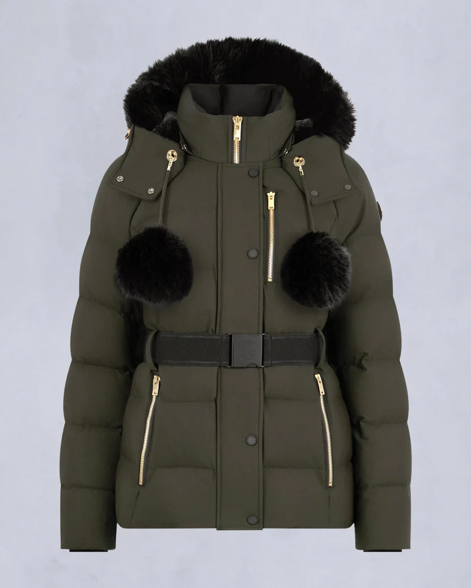 - Removable Hood with Removable Shearling Trim And Pom Poms