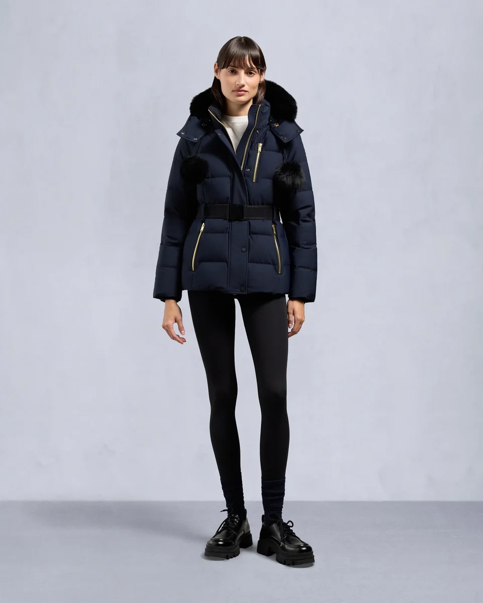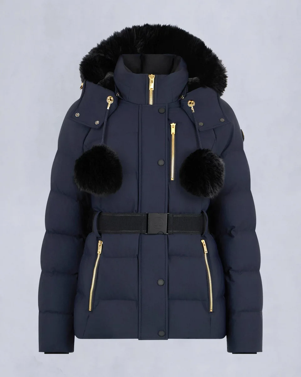 • Removable Hood with Removable Shearling Trim And Pom Poms