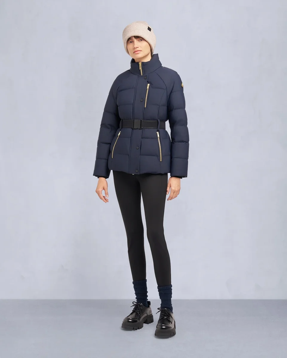 Chic tailoring meets high-performance warmth. Breathable, yet made from 90/10 goose down with a wind-repellent, wind-resistant outer, it features a cozy removab