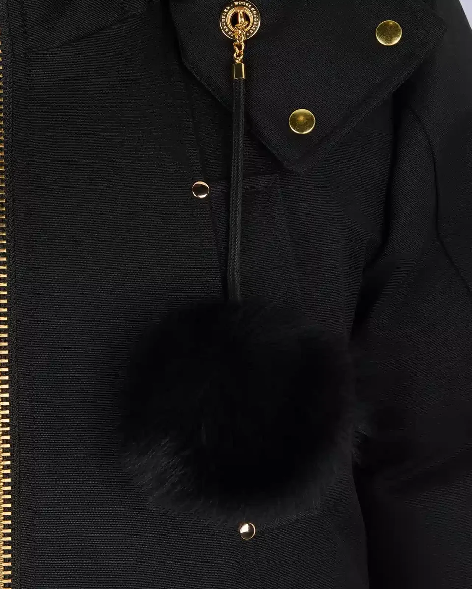 • Removable Hood with Removable Shearling Trim And Pom Poms