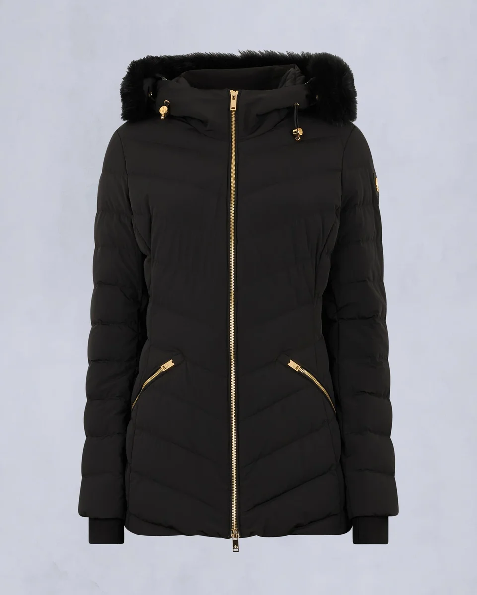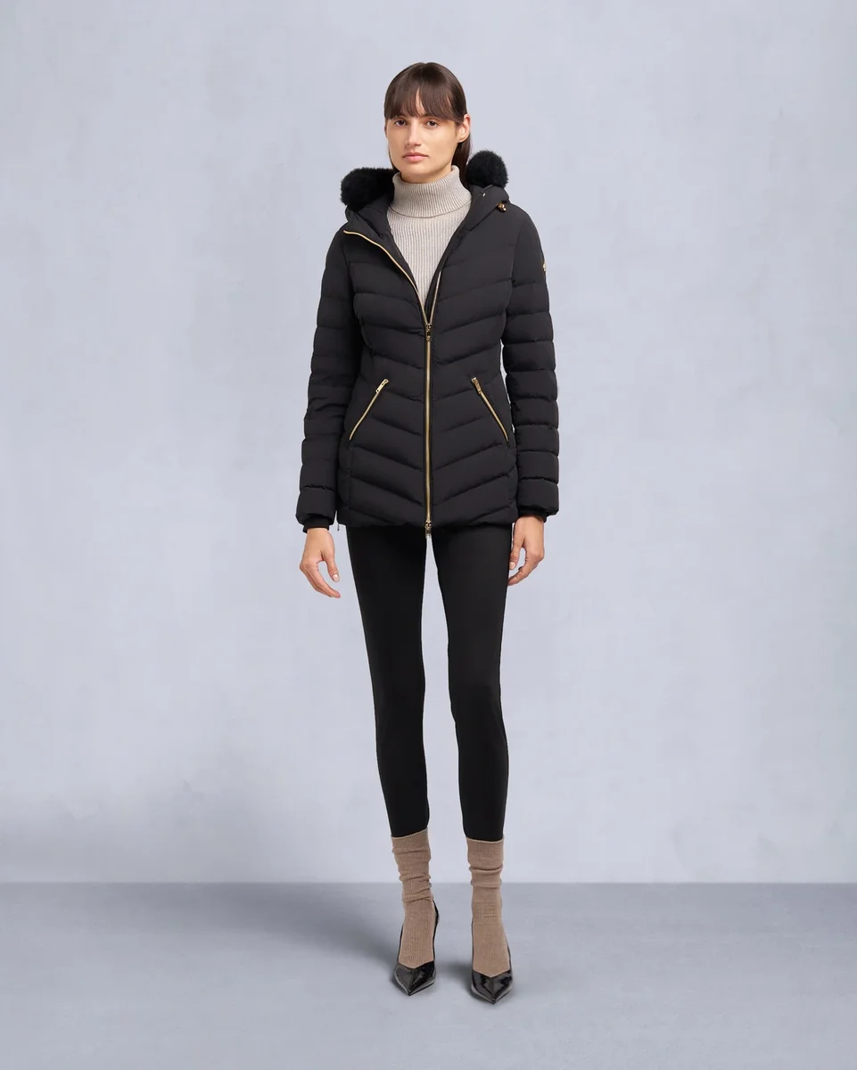 - Adjustable Hood with Shearling Trim