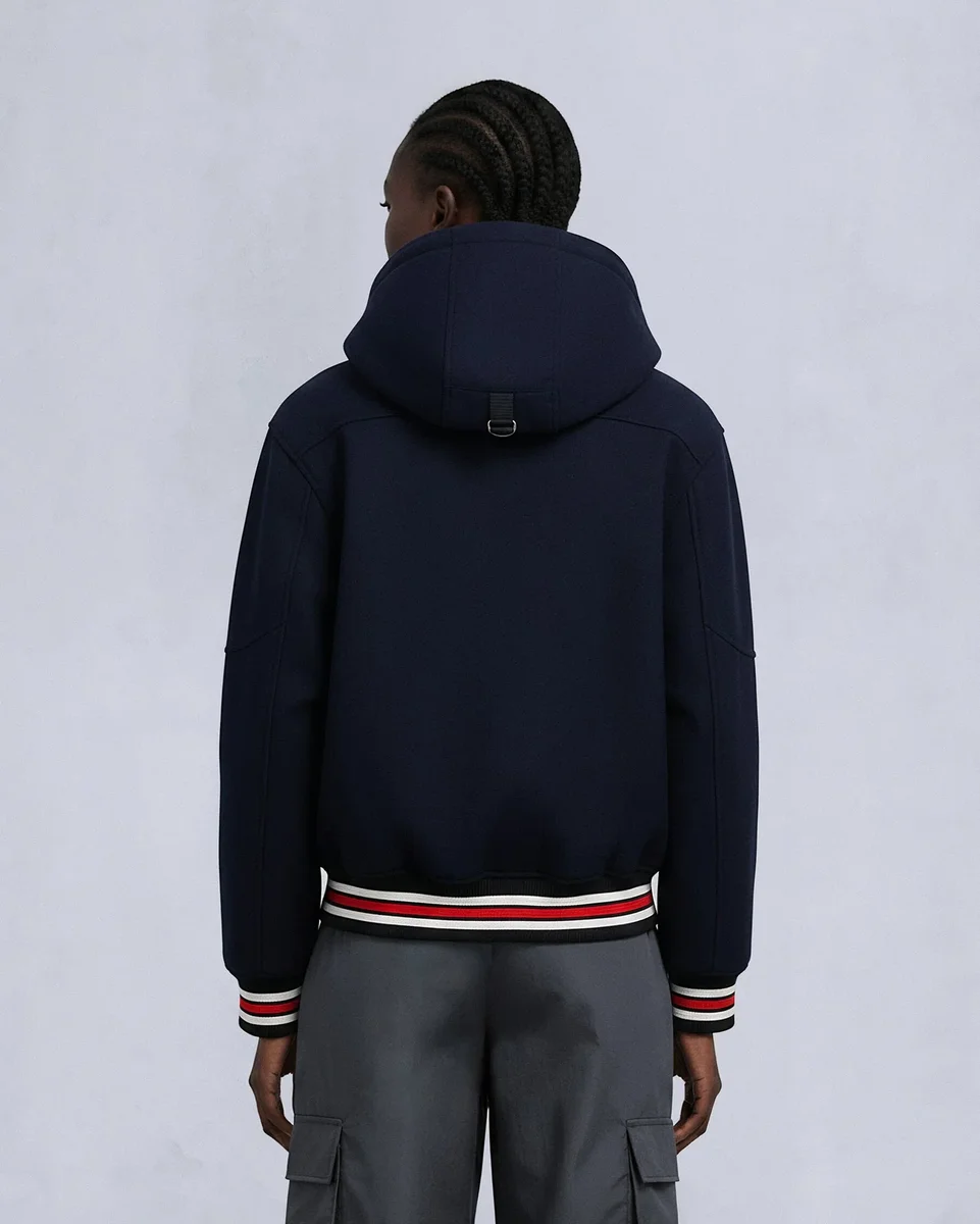 - Removable Hood with Removable Shearling Trim And Pom Poms