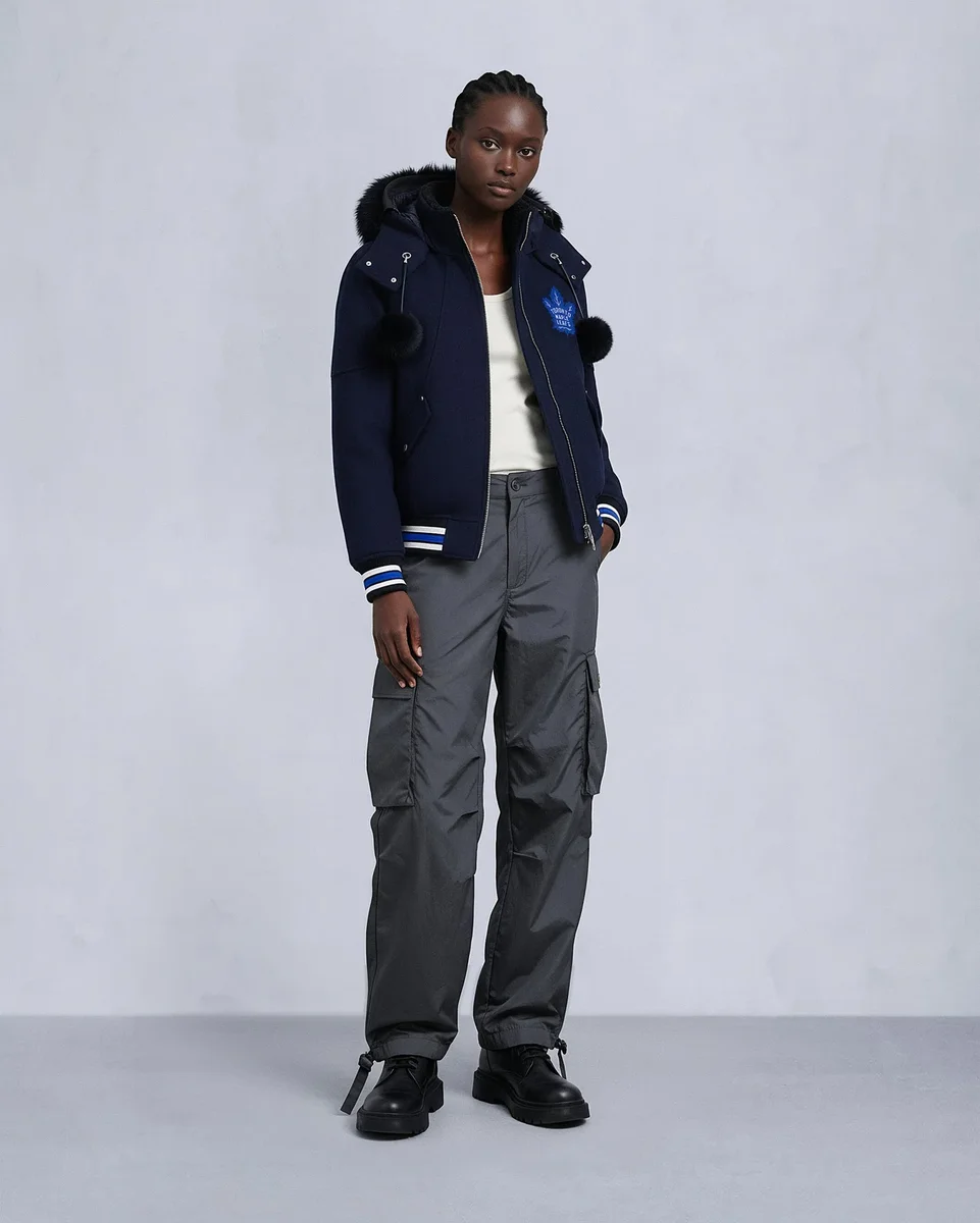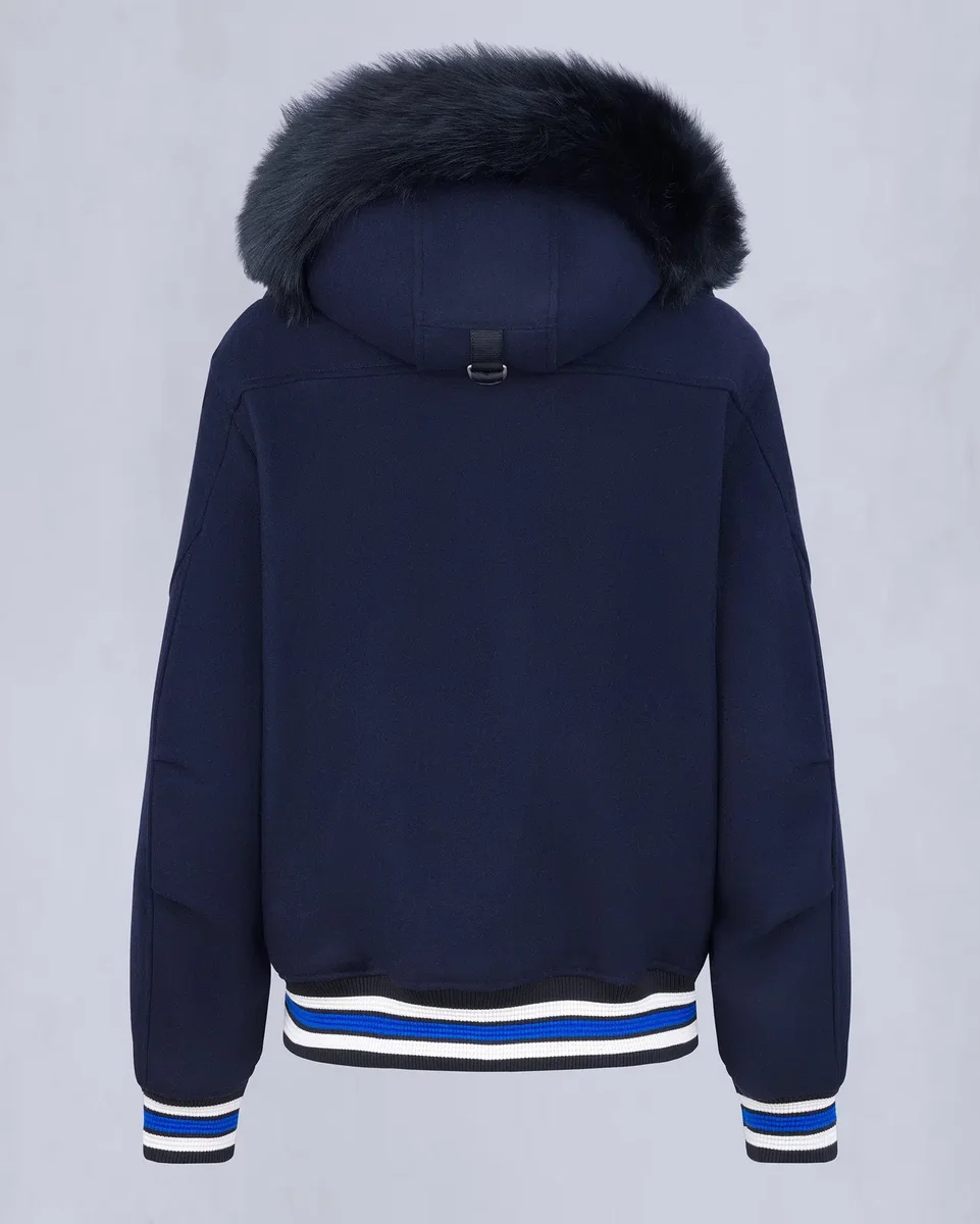 - Removable Hood with Removable Shearling Trim And Pom Poms