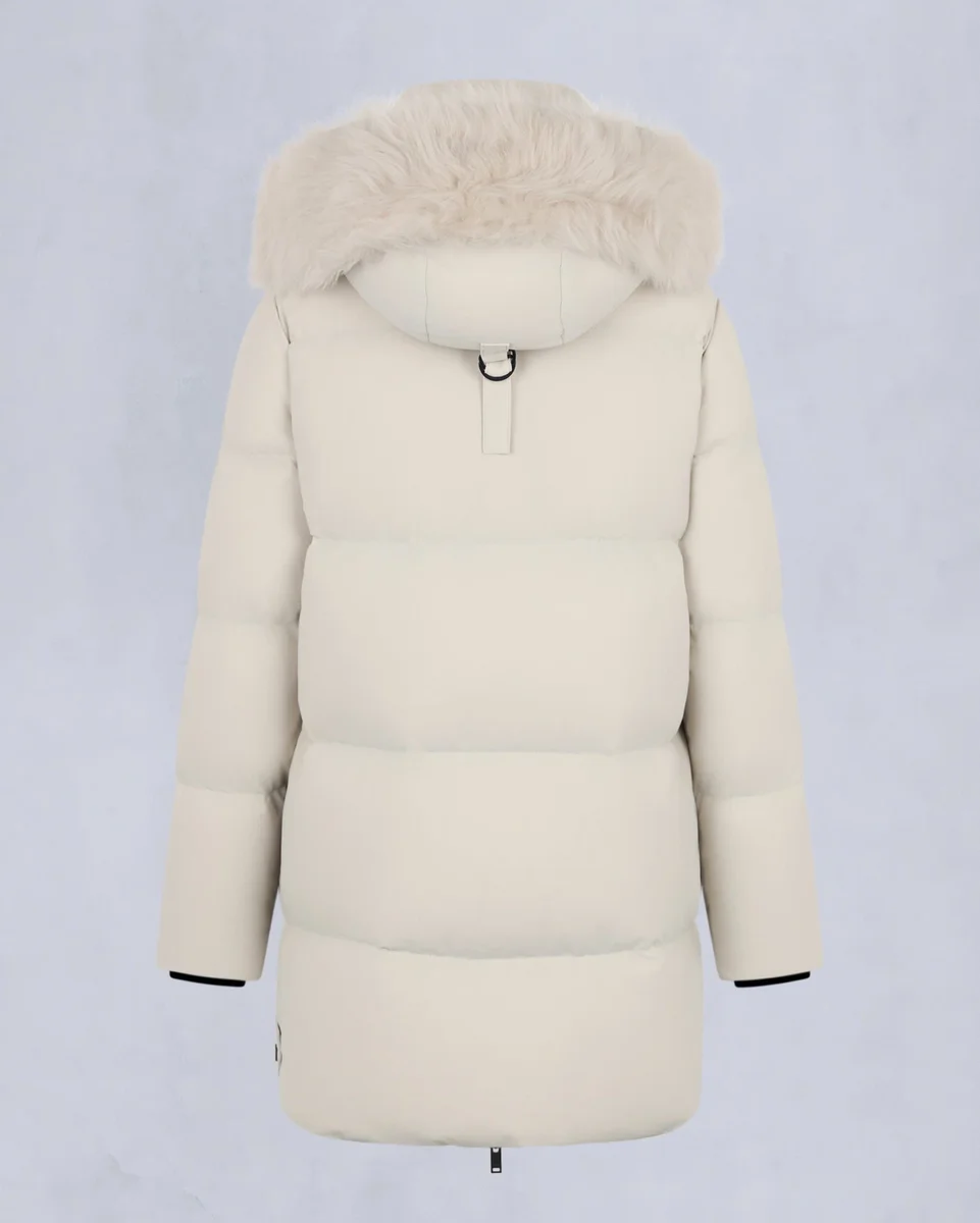 Elevate your winter wardrobe with the Chelia Shearling 3Q, a chic, yet supremely warm coat with mid-thigh length coverage and a cozy relaxed fit. Crafted with R