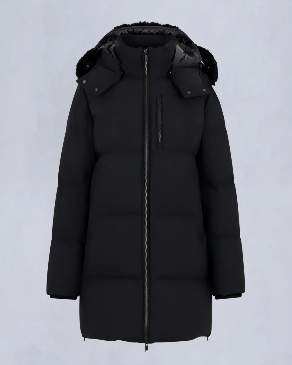 Elevate your winter wardrobe with the Chelia Shearling 3Q, a chic, yet supremely warm coat with mid-thigh length coverage and a cozy relaxed fit. Crafted with R