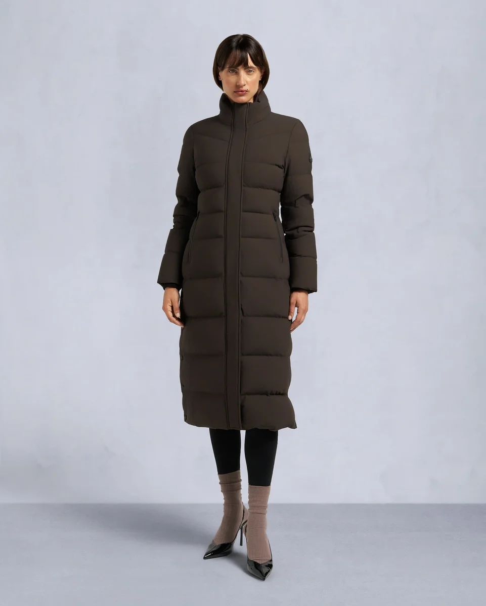 The Jocada Parka offers full-length protection in a sleek, feminine silhouette, made from soft-yet-durable Nyluxe that stands up to wind and water. Side snaps a