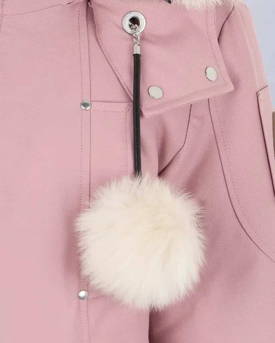 • Removable Hood with Removable Shearling Trim And Pom Poms