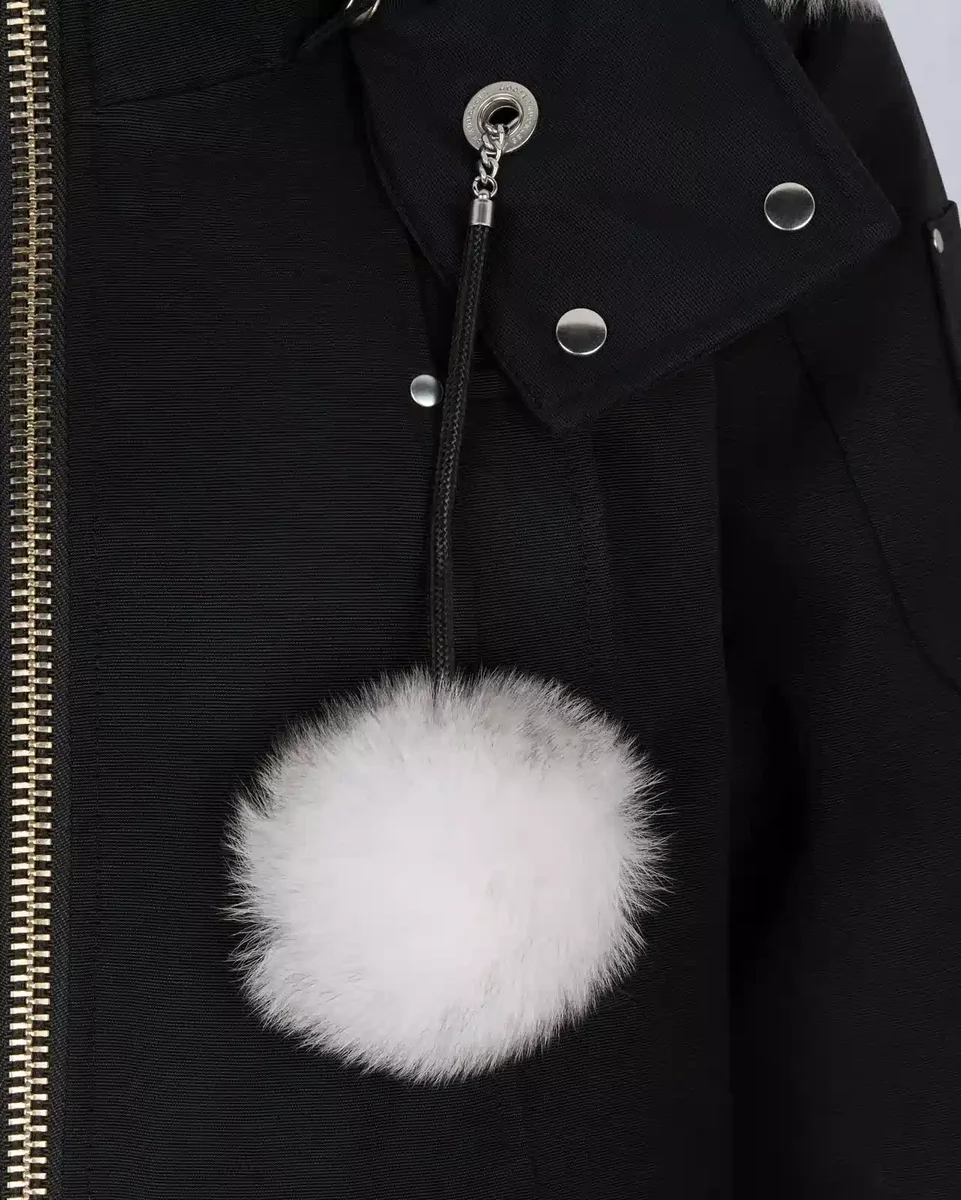 • Removable Hood with Removable Shearling Trim And Pom Poms
