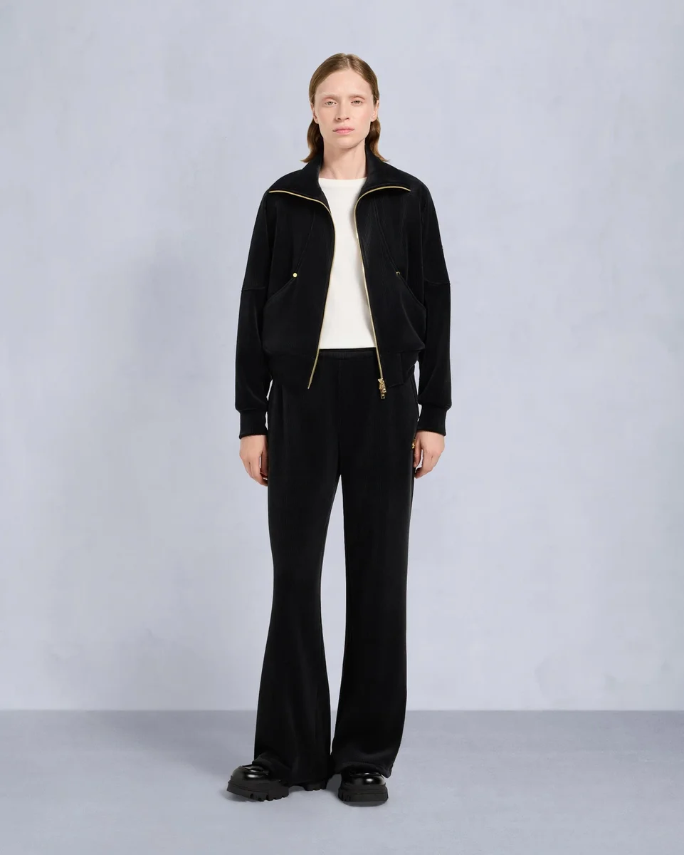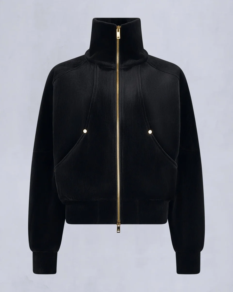 Luxuriate in style with the ultimate zip-up, fashioned in super-soft corduroy velour. Pair with the matching pants for the full cozy effect.