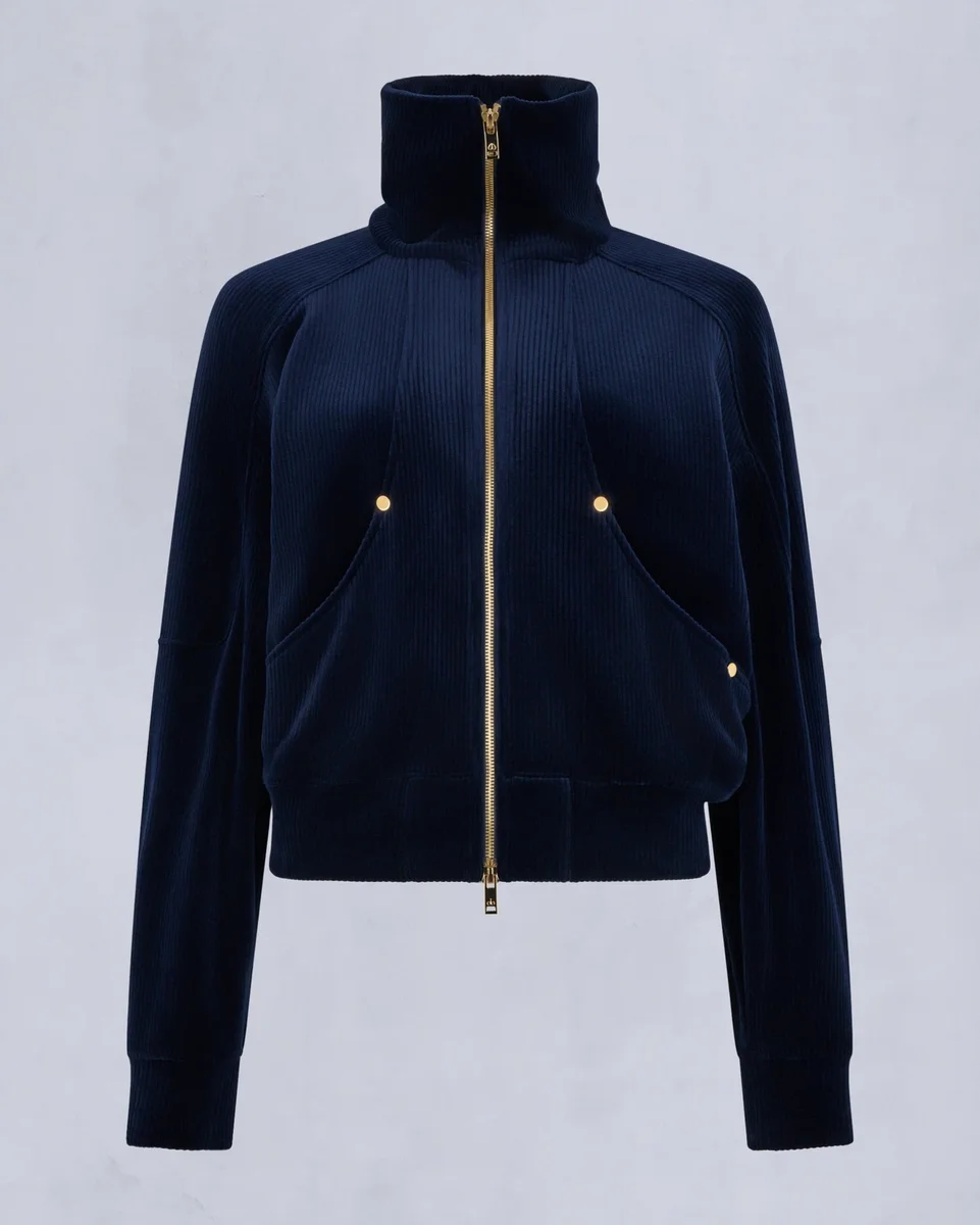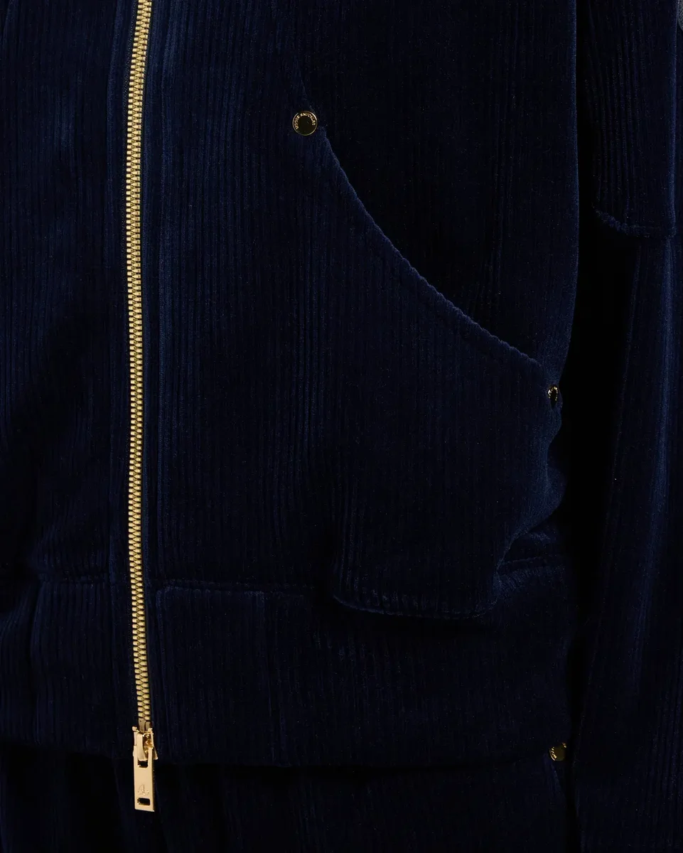 Luxuriate in style with the ultimate zip-up, fashioned in super-soft corduroy velour. Pair with the matching pants for the full cozy effect.