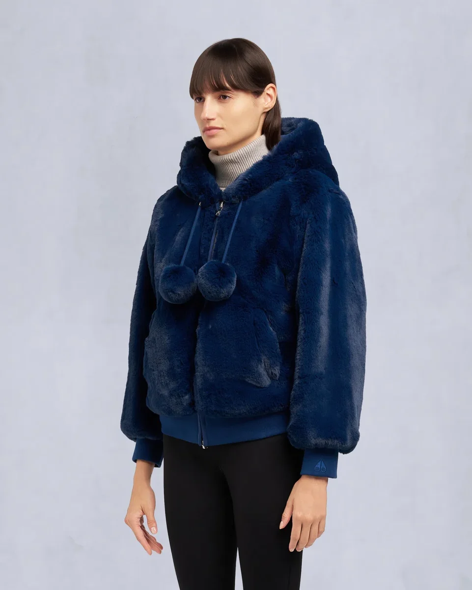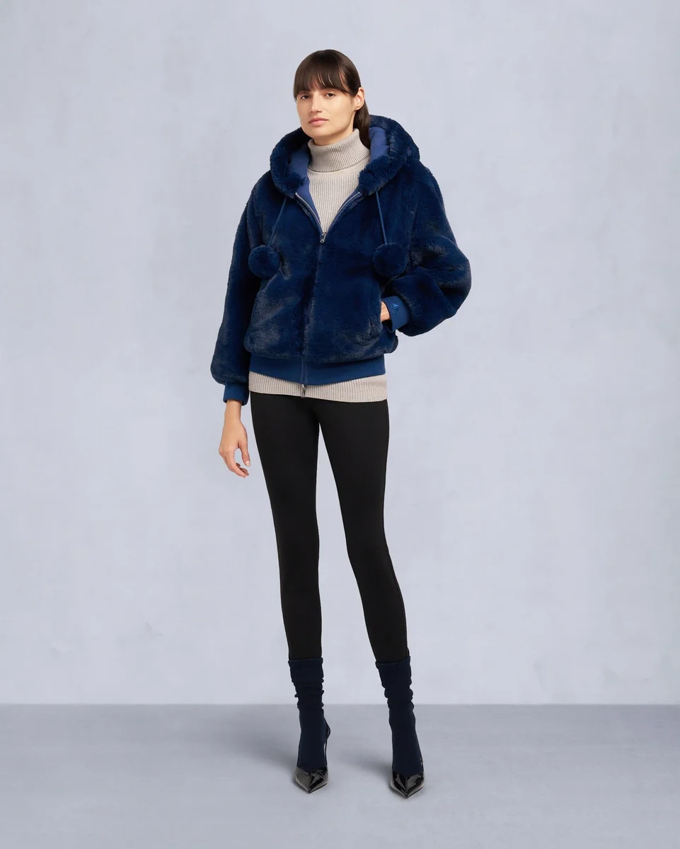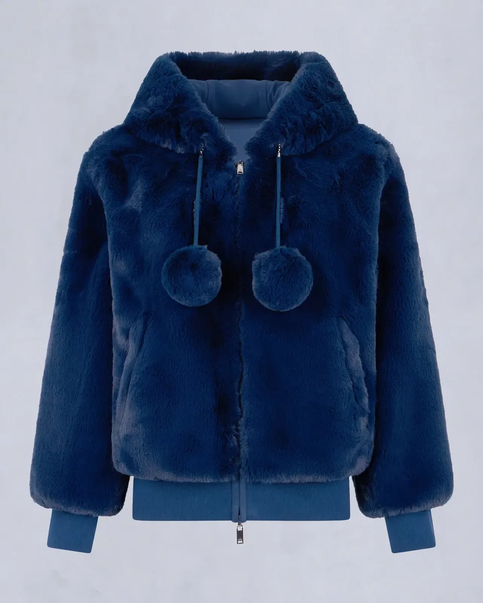 • Hood with Removable Faux Fur Pom-Poms
