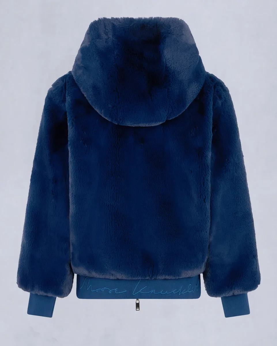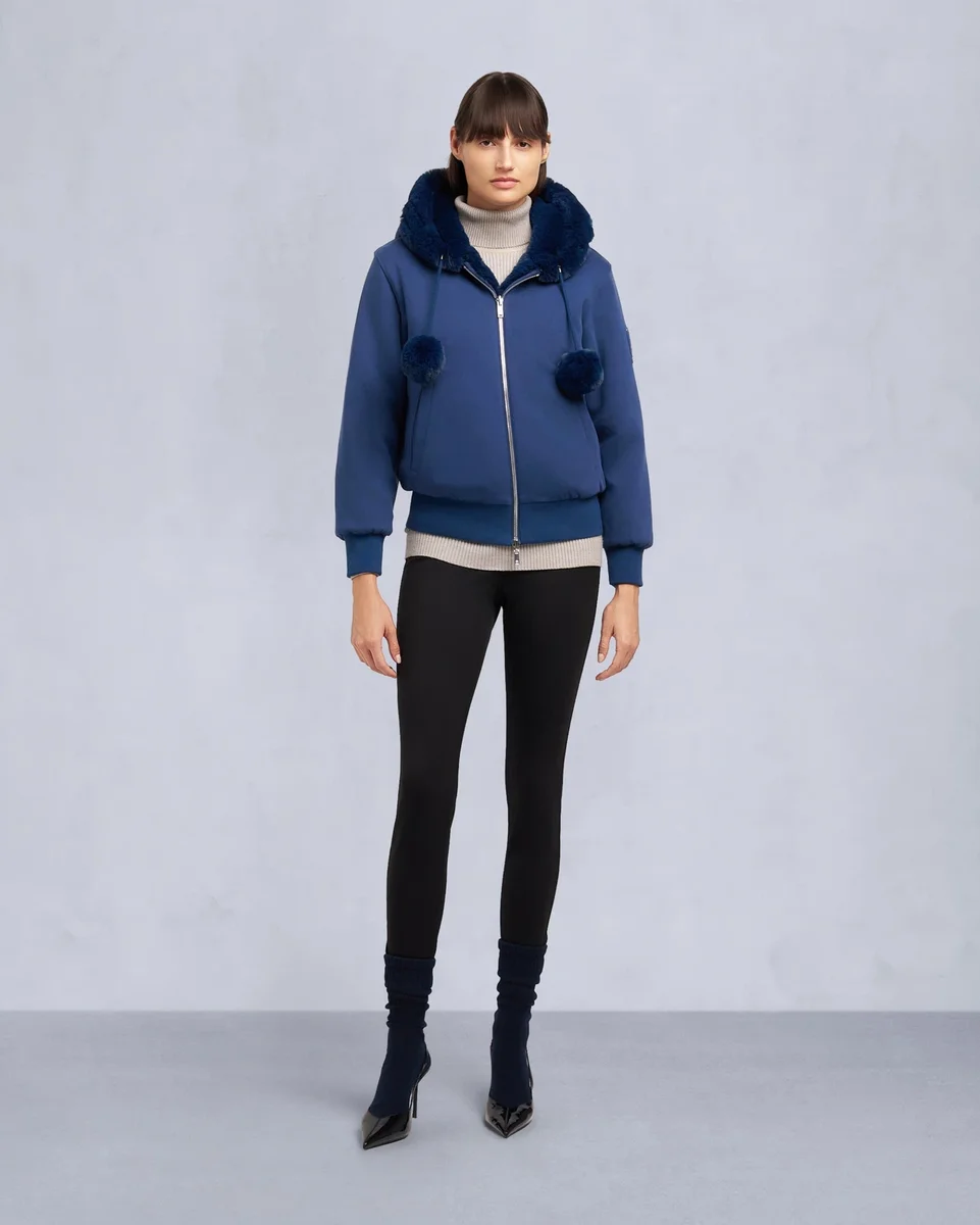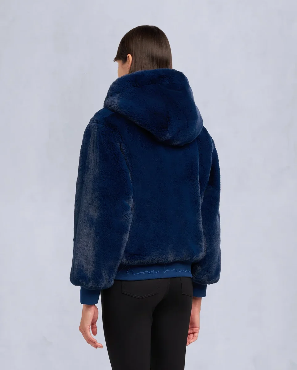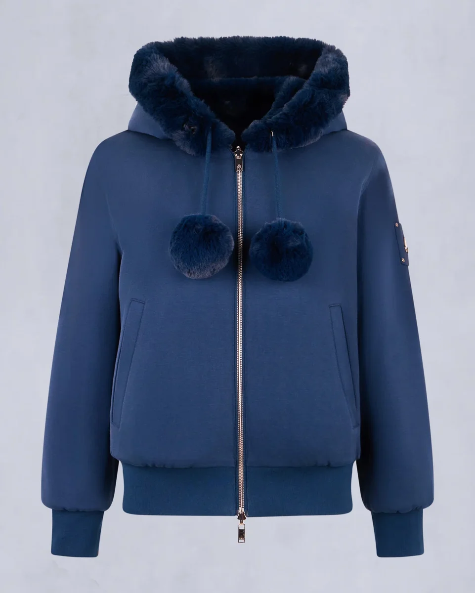 • Hood with Removable Faux Fur Pom-Poms